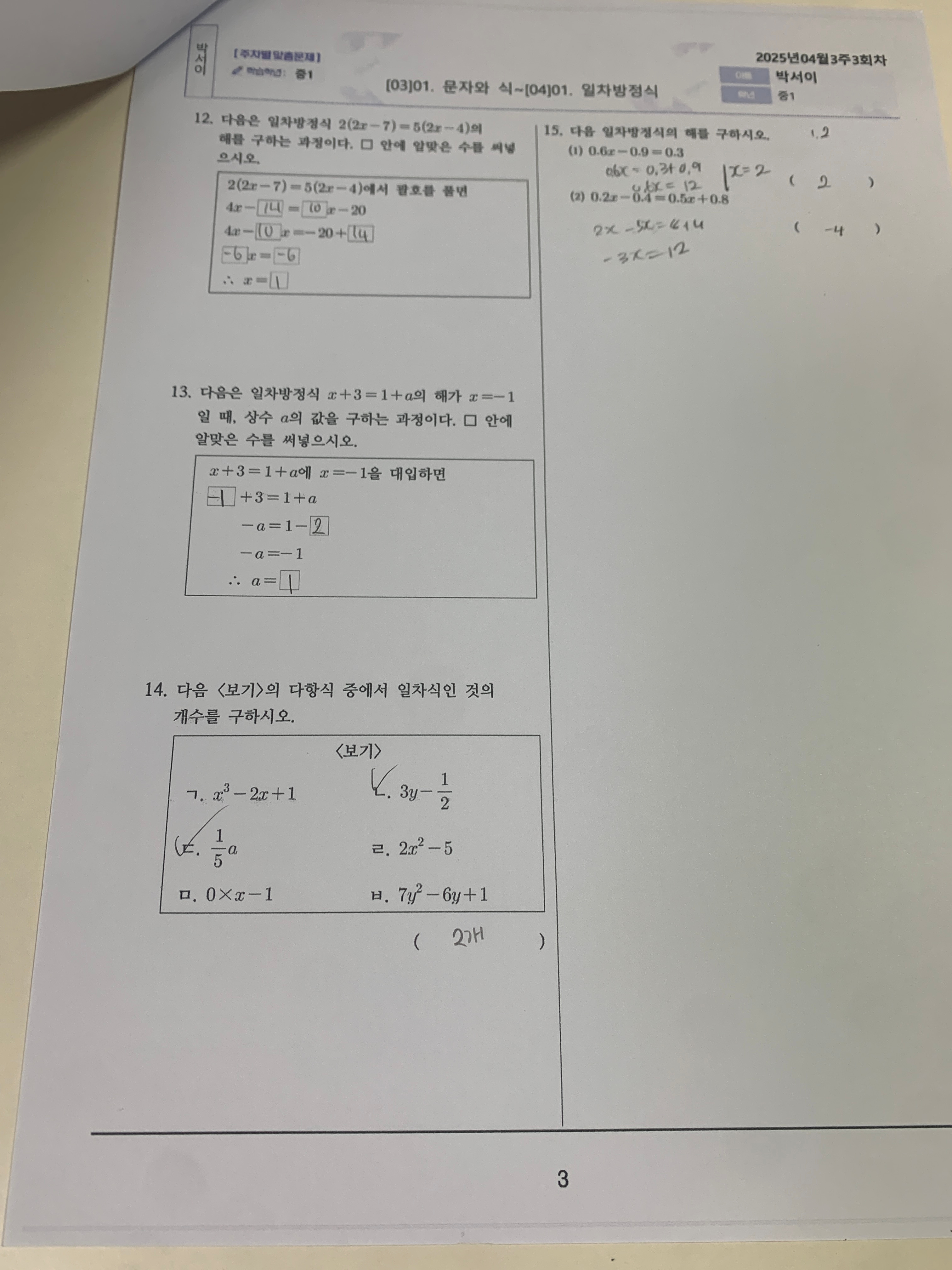 2025학년도 1학기 1차고사