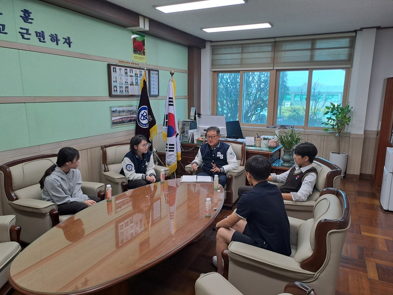 각 학년 대표가 학생들의 의견을 반영한 건의 사항을 이야기하고 교장선생님의 현실적인 조언과 조율을 통해